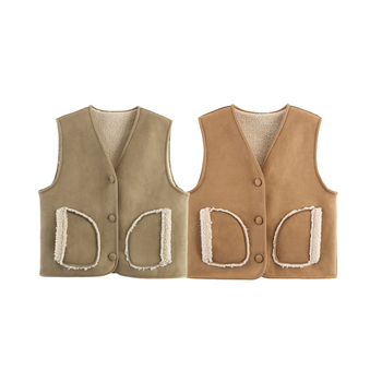 KAR & OT ZA 2025 Otoño e Invierno nueva moda Simple Casual de un solo pecho bolsillo oblicuo cuello en V chaleco sin mangas chaleco 6068