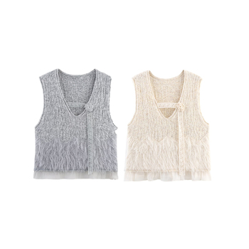 KAR & OT ZA 2025 Otoño e Invierno nuevos productos moda suelta Casual temperamento Delgado cuello en V sin mangas Chaleco de punto 6069