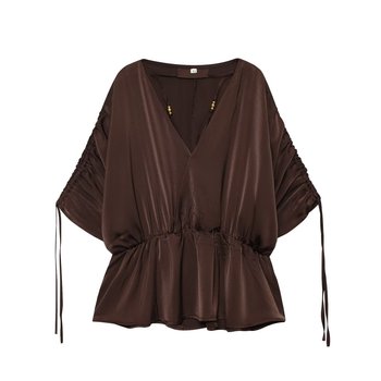 KAR & OT ZA 2025 autunno e inverno nuovi arrivi elastico in vita con cinturino sottile con collo a v Top camicia in raso testurizzato 8165945