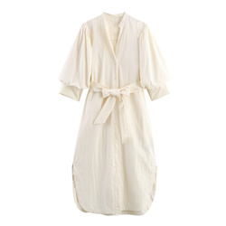 קררוט זה 2025 סתיו אלגנטי חדש מזג אופנה קשת קישוט עלים שרוול V צוואר midi 8193325