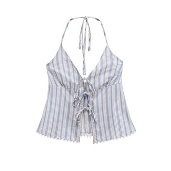 קרארוט זה 2025 סתיו נשים חדשות ניגודיות פסים חצאי תחרה הצוואר העליון גלימה תחרה תחרה קמור העליון uyl250029