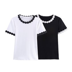 קר & ot זה 2025 סתיו חדש תלת מימדי רזה פרח עגול פשוט חולצת טריקו 5644863 העליון