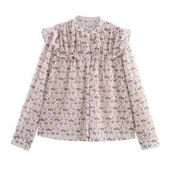 קר & ot זה 2024 סתיו בסגנון חג פרפר פרח הדפס חרוט צווארון לבן חולצה נשים 9028220