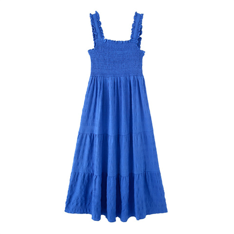 בד kar & ot זה 2025 בד כחול כהה מתנוד שמלה בסגנון חדש סגנון שרוד קישוט דפוס מוצק המותניים טבעי מידי