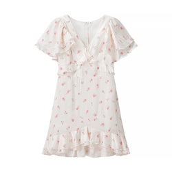 קרארוט זה 2025 סתיו אופנה חדשה רזה מזדמנים הדפס לוטוס וצוואר סקסי עלים 2873 שמלת פרחים