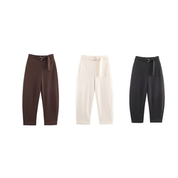 KAR & OT ZA 2025 가을과 겨울 새로운 패션 심플 중간 허리 와이드 레그 느슨한 벨트 캐주얼 바지 4174675 4174674