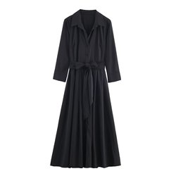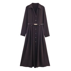 KAR & OT ZA 2025 가을과 겨울 신상품 패션 기질 심플 슬림 핏 벨트 셔츠 미디 원피스 5029204