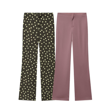 KAR & OT ZA 2025 가을 여성 캐주얼 느슨한 와이드 레그 새틴 질감 중간 허리 플레어 바지 3067507 4764157