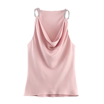KAR & OT ZA 2025 가을과 겨울 신상품 구슬 장식 드레이프 목선 새틴 질감 민소매 조끼 탑 5029211